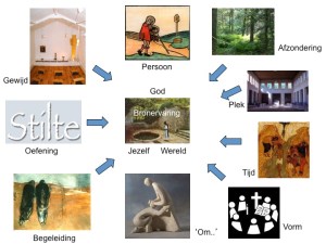 Dingen als lichaamshouding, ademhaling e.d. kende ik niet vanuit mijn eigen traditie; was zelfs ‘gevaarlijk en Oosters’. Mijn ‘stille tijd‘ die ik had(= 1973-78) geleerd bij een evangelische studenten beweging was vooral gevuld met ‘scrupules’. De boeken van Henri Nouwen zetten mij op een ander spoor: stilte/woestijn als heilzame aanwezigheid. Vanaf 1985 werd ik door het boek van Kees Waaijman op het spoor gezet van ‘de geestelijke oefening’. Later kwamen daar de prachtige boeken van Han de Wit bij: ‘Contemplatieve psychologie’ en