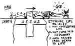 Ik was al een keer bezocht. Maar ik durfde nog geen ‘beslissing’ te nemen. Mij was de ‘brugillustratie’ (plaatje is van +/- 1935) uitgelegd en ik hoefde alleen nog maar Jezus in mijn hart te vragen en ik was ‘gered’ van de zekere hel. ‘Volgend jaar misschien’; zei ik. Volgens mij was ik zo bang voor de hel dat ik zelf initiatief heb genomen om op een Johanneskring te gaan; een soort Alpha Cursus ‘avant la lettré’. Ik wilde mij voor mijn volwassen wording bekeren. Niet dat ik niet geloofde.. Integendeel; maar zeker was ik niet. Het moet het najaar van 1972 zijn geweest. Ik kwam met heel mijn hebben en houden bij de student evangelisatie beweging De Navigators terecht(nee toen nog geen studentenvereniging). Youth For Christ was er leuk bij. Ik ging elke dag ‘stille tijd’ houden, kwam op een bijbelkring, ging memoriseren en deed elke week intensief bijbelstudie. In die jaren doorliep je een soort scholingsprogramma waarin je begon als bekeerling (1 jaar) en vervolgens een toewijdingsbeslissing nam om discipel te worden. Na een jaar werd je dan, bij ‘vertoond goed gedrag’, discipel maker. Je werd dan kringleider en ging ’s avonds (ik was serieus en ging wel 2x per week) op bezoek bij nieuwe studenten. Er waren ‘open avonden’ met zang en een serieuze preek. Er was gescheiden meiden- en jongenswerk. Ik was heel serieus; deed alles om mijn ziel en die van anderen te redden. Probeerde zelfs mijn broer te bekeren want hij was mij zeer lief…. Alle conferenties en werk- en trainingskampen deed ik mee. Met mijn reformatorische achtergrond was ik denk ik een ‘modeldiscipel’. Maar het was wel heel hard werken; niets voor niets….