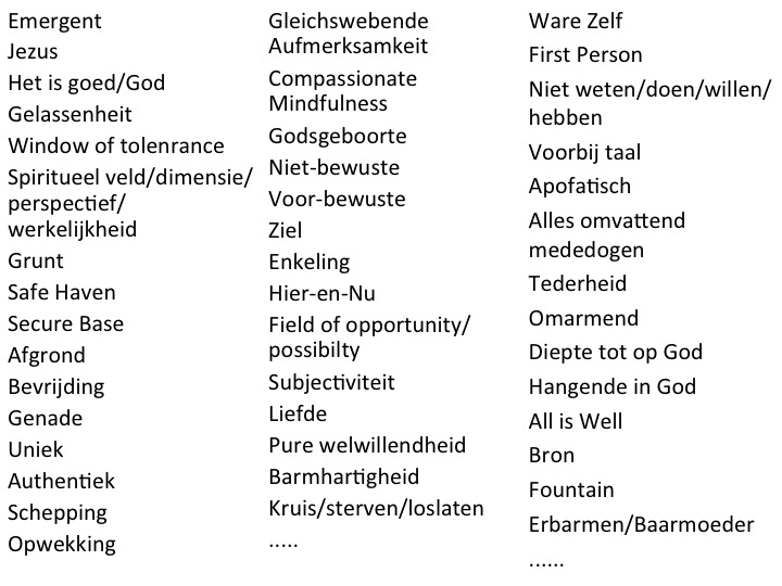 Ik moet natuurlijk heel nuchter beginnen. In de allereerste plaats is dit ‘midden’ het domein van de prefrontale cortex. Dat is het deel van onze hersenen welke een cruciale rol speelt in onze emotionele huishouding en zelf-bewustzijn. natuurlijk moet ik hierbij ook de rechterhersenhelft als ‘woonplaats’ van het impliciete zelf. Zij maakt vooral gebruik van ‘beelden’ en niet van ‘taal’. Je zou het de cockpit kunnen noemen van waaruit wij mentaliseren en onze emoties reguleren. De eerste drie jaar van onze ontwikkeling en later in de puberteit krijgt dit deel zijn grootte, vorm en functie. 41Q6-WBFjML._SX331_BO1,204,203,200_Stress en hechtingsproblemen hebben in die periodes (inclusief de zwangerschap) een desastreuze invloed op de ontwikkeling daarvan. Hier hebben we het ook over het ‘onbewuste impliciete zelf’ welke huist in de rechterhersenhelft. Er is op dit moment een zeer belangrijke stroming  die de psychotherapie een sleutelrol toebedeeld in het herstel van die innerlijke huishouding/zelfregulering. In een heel groot deel van de psychopathologische aandoening speelt dit deel (rechterhersenhelft en de prefrontale cortex) van de hersenen namelijk een sleutelrol in het ontstaan en herstel daarvan. Als ik dus in dit blog allerlei religieuze metaforen een rol laat spelen moeten zij 9200000005537338essentieel zijn of in ieder geval een substantieel bijdrage leveren aan het herstel van dit fenomeen. Ja, ik geloof dat religie, als het goed is, een positieve bijdrage levert aan heelwording van de mens maar dat is verre van vanzelfsprekend. Overigens bevind zich hier de essentiële bijdrage van mindfulness / awareness aan de heelwording van de mens. Die acht ik inmiddels meer dan voldoende bewezen. Dat betekent dat alle onderstaande bijdragen ook een beetje mindful zullen moeten zijn.