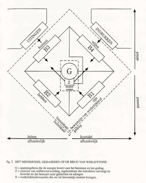 Dit is een denkmodel voor de zelfbesturing van de onzichtbare menselijke psyche ofwel de ziel. Het model is gebaseerd op vier oriëntaties n.l. willen, kunnen, hebben en zijn, die als zender/ontvangers functioneren. Deze moeten allen door innerlijke aandacht tot bewustzijn (B) worden gebracht. Er moet een evenwicht worden bewaard tussen wat de mens wil hebben en naar zich toehaalt en kan zijn, wat hij betekent voor de ander. Er is maar één uiterlijke ingang en maar één uitgang, die gekoppeld zijn aan de zenuwbanen. Er is ook een innerlijke bron bij het zijn, die tot bewustzijn moet worden gebracht door woorden uit de omgeving en door systematische zoeken en vragen naar de inhoud van wat is goed in de gegeven situatie.