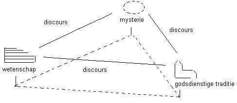 Een tweede model wat voor mij de dingen in kaart brengt is een die in ontleen aan de website van Aartjan van den Berg. Een leuk detail dat hij het horizontaal projecteert. Er is een ‘geheim’ welke Thomas Merton ‘the hidden ground of love’ noemt. Met Eckhart zou ik het ‘Grunt’ noemen. In het midden zet ik echter mijzelf en al die anderen. Dat wat ik eerder het personale perspectief noemde. Zowel in de wetenschappelijke gemeenschappen als in de geleefde spirituele groepen (waar ik atheïsten en humanisten ook toe reken) wordt er nagedacht over elkaar, de geleefde ervaring en de ‘Bron’ van dat alles.